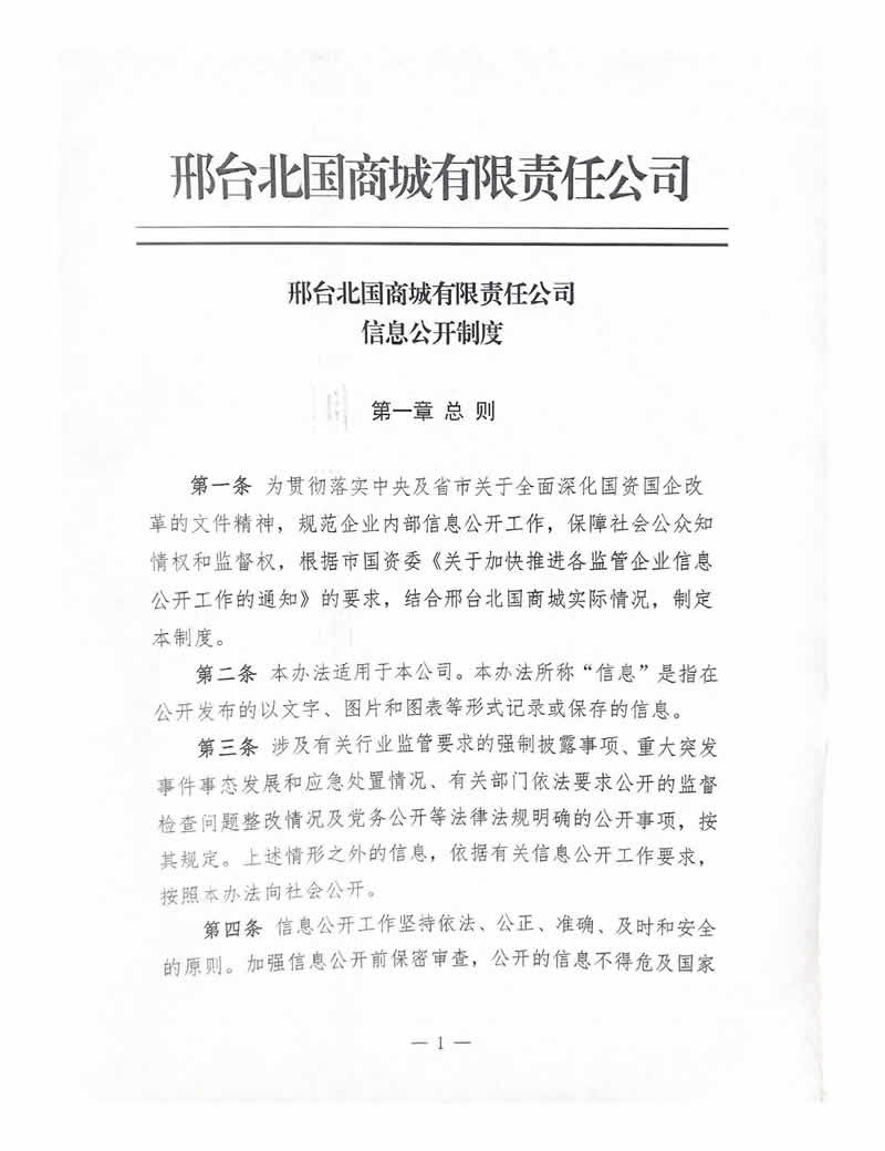 邢臺(tái)北國商城有限責(zé)任公司信息公開制度