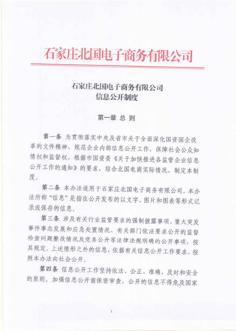 石家莊北國電子商務有限公司信息公開制度