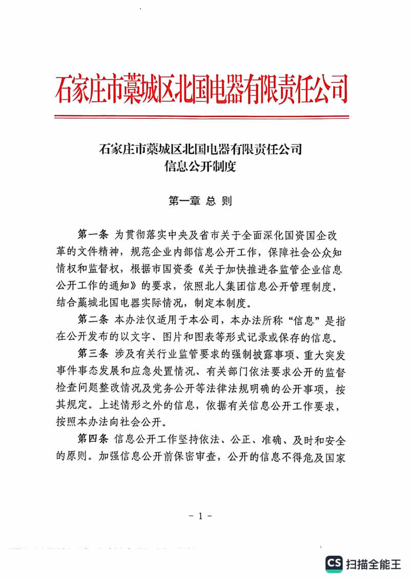 石家莊市藁城區(qū)北國(guó)電器有限責(zé)任公司信息公開制度
