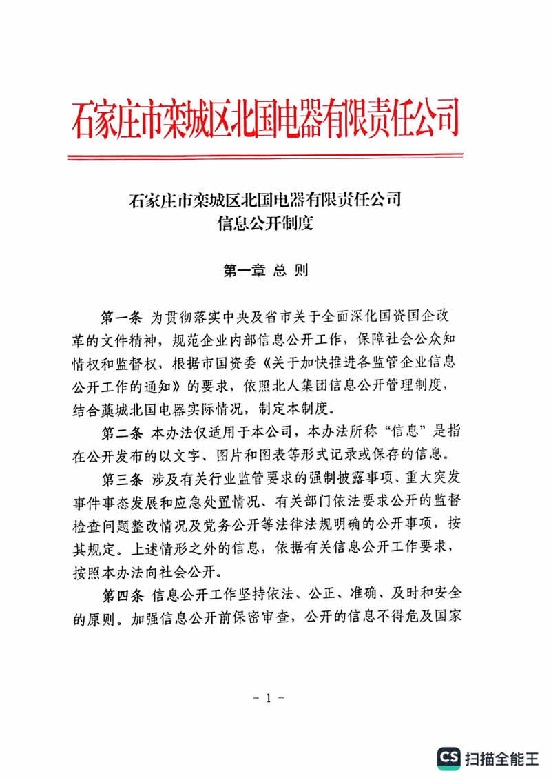 石家莊市欒城區(qū)北國電器有限責(zé)任公司信息公開制度