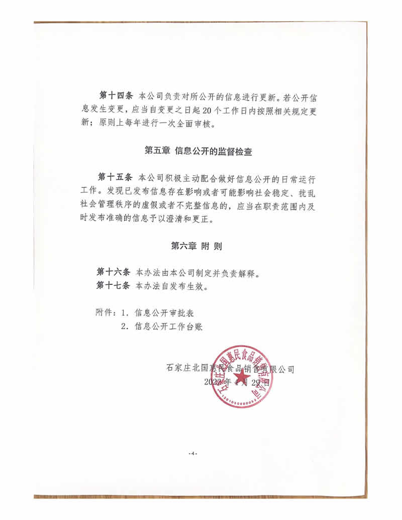石家莊北國惠民食品銷售有限公司信息公開制度