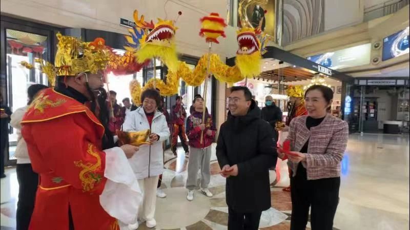 伴隨著歡快的舞龍樂(lè)曲,北國(guó)商城甲辰龍年迎賓儀式歡樂(lè)開(kāi)啟!徐建航、劉雋在北國(guó)商城負(fù)責(zé)人沈崢陪同下,共同迎接著龍年新春來(lái)到北國(guó)商城的第一波客人!