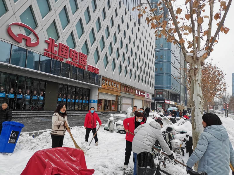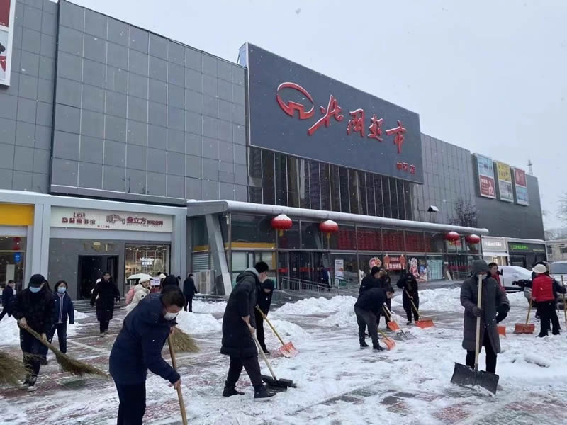 2月20日至21日,石家莊普降大雪,給市民出行、消費者購物帶來了諸多不便。北人集團旗下各賣場認(rèn)真履行“門前三包”義務(wù),組織干部員工及時清理門前積雪和殘冰,保障門店前道路通暢、行人安全出行。