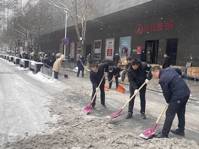 清雪現(xiàn)場,集團黨員干部職工不顧嚴(yán)寒、相互配合,齊心協(xié)力清理道路上的冰雪,助力市民出行便利、順暢。