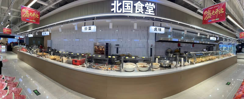 北國超市清河灣店整體裝修整潔明亮,店內(nèi)擴大了鮮食區(qū)域,創(chuàng)新打造自營模式,開設(shè)北國食堂,提升現(xiàn)制、熟食等鮮食比例,增加現(xiàn)烤現(xiàn)炸、現(xiàn)炒現(xiàn)熬、明廚亮灶等場景,同時增設(shè)堂食區(qū)、顧客休息區(qū)及自助服務(wù)區(qū),充分滿足社區(qū)定位需求,為消費者提供更加安全、方便、舒適的購物環(huán)境。