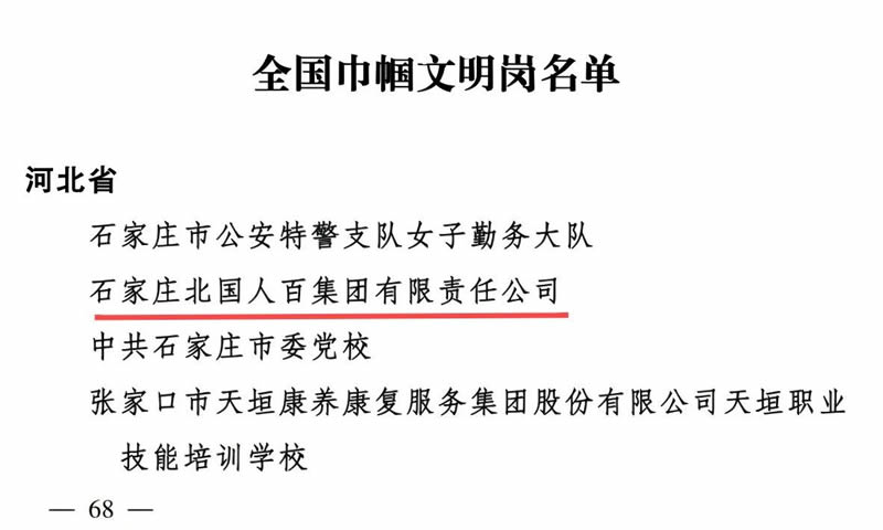 《全國(guó)婦聯(lián)女性之聲》2月28日?qǐng)?bào)道,為表彰先進(jìn)、樹(shù)立榜樣,激勵(lì)廣大婦女自尊自信、自立自強(qiáng),奮進(jìn)新征程、建功新時(shí)代,積極投身中國(guó)式現(xiàn)代化建設(shè),全國(guó)婦聯(lián)決定,授予王志勤等10人全國(guó)三八紅旗手標(biāo)兵稱號(hào),授予張曉歡等596人全國(guó)三八紅旗手稱號(hào),授予首都醫(yī)科大學(xué)附屬北京婦產(chǎn)醫(yī)院北京婦幼保健院等395個(gè)單位全國(guó)三八紅旗集體稱號(hào),授予北京市城建園林金都公司綠化三大隊(duì)天安門廣場(chǎng)特養(yǎng)班組等599個(gè)單位全國(guó)巾幗文明崗稱號(hào)。其中,北人集團(tuán)榮獲“全國(guó)巾幗文明崗”稱號(hào)。