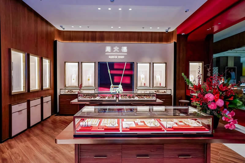 周大福北區(qū)首家新形象店位于北國(guó)商城一層,總面積156平方米,新形象店以時(shí)尚、優(yōu)雅的設(shè)計(jì)呈現(xiàn)出經(jīng)典、永恒的品牌個(gè)性,同時(shí)亦融入中華文化的設(shè)計(jì)細(xì)節(jié),糅合當(dāng)代時(shí)尚與傳統(tǒng)工藝的設(shè)計(jì)元素,并加入獨(dú)有的藝術(shù)風(fēng)格。有別于以往的傳統(tǒng)櫥窗設(shè)計(jì)布局,以展覽式陳列模式,鼓勵(lì)顧客于店鋪漫游、參觀及鑒賞周大福珠寶,令整個(gè)體驗(yàn)變得更具引導(dǎo)性及故事性,開(kāi)放的空間提供嶄新及舒適的購(gòu)物體驗(yàn),向世界展示中國(guó)珠寶之美。店內(nèi)不僅陳列了周大福經(jīng)典珠寶系列,還呈現(xiàn)拍賣(mài)級(jí)翡翠、高級(jí)珠寶、珍藏級(jí)黃金擺件等眾多獨(dú)有珠寶,以創(chuàng)新的場(chǎng)景、獨(dú)特的貨品,重塑珠寶零售場(chǎng)景。加入CTF for YOU是周大福全新推出的專(zhuān)屬定制服務(wù),為顧客挑選禮物提供更多元化、個(gè)性化的選擇,賦予禮物專(zhuān)屬意義。