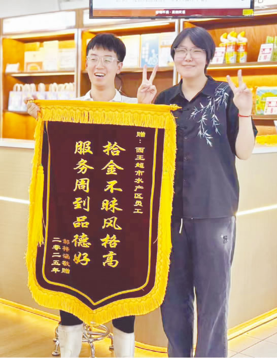 一天下午,北國超市西興店生鮮部員工張?zhí)忑埓驋咝l(wèi)生清理地墊時發(fā)現(xiàn)了一個金色四葉草小鑰匙吊墜,撿起來之后,他判斷出吊墜是真金材質(zhì),心里不禁擔(dān)憂:失主發(fā)現(xiàn)吊墜丟失后得多著急啊。正當(dāng)他準(zhǔn)備向門店領(lǐng)導(dǎo)匯報的時候,店內(nèi)廣播響起“哪位顧客朋友或員工朋友撿到了一個項(xiàng)鏈吊墜……”的尋物通知。張?zhí)忑埩⒖探唤邮诸^的工作,快步趕往服務(wù)臺,經(jīng)過與失主核實(shí)信息無誤后,他將吊墜歸還給了失主。